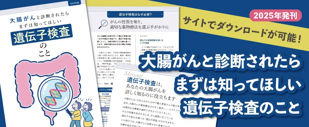 「大腸がんは、日本人のがんの中で最も患者さんの数の多いがんです。近年、大腸がんの薬物療法は大きく進歩し、一人ひとりのがんの性質に応じた効果的な治療薬を選択できるようになりました。がんの性質を知るためには、がん細胞に生じている遺伝子の変化を調べる遺伝子検査が欠かせません。この冊子では、大腸がんと診断された患者さんが、治療を始める前に知っておいていただきたい遺伝子検査の情報をまとめました。適切なタイミングで必要な遺伝子検査を受け、ご自分に最も合った治療にたどり着くためにご活用いただければ幸いです」