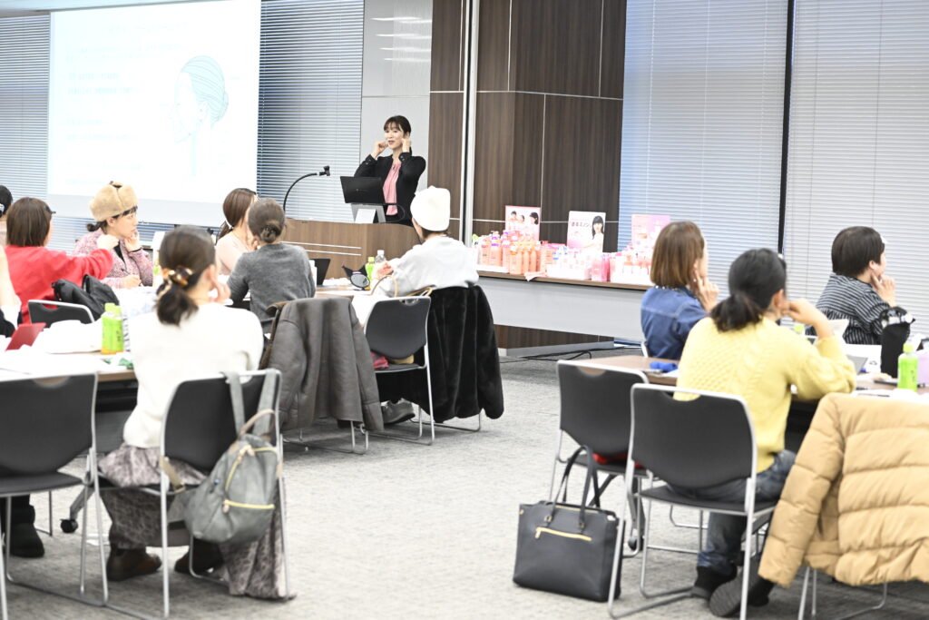 でも治療中だからといって、引きこもってばかりはいられない世代かと思いますので、治療中でも治療を感じさせないようなベースメイクの作り方をお伝えしていきたいと思っております。自分の外見を守ることは、治療を乗り越える力になります」と語り、カバーメイクが単なる化粧を超え、心の支えになる」と参加者に語りかけました。